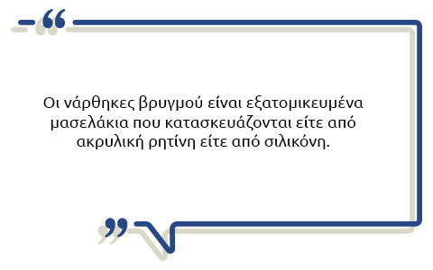 Οι νάρθηκες βρυγμού είναι εξατομικευμένα μασελάκια που κατασκευάζονται είτε από ακρυλική ρητίνη είτε από σιλικόνη.